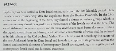 Prof. Yaron Ben-Naeh wrote in the preamble that "The Sephardi Jews in Eretz Israel in the 19th century and at the beginning of the 20th formed a cluster of various groups, which in many senses may almost be regarded as a microcosm of the Jewish world at the time. The volume aims to describe the nature of the non-Ashkenazi Jewry in Eretz Israel and to emphasize its presence and discourse of contemporary Israel society and the Israeli social and historical awareness." Actually, this volume illustrates it in a very precise and accurate way, rich in its contents and insights, and enriches the Jewish bookshelf with numerous pieces of information in all walks of life.