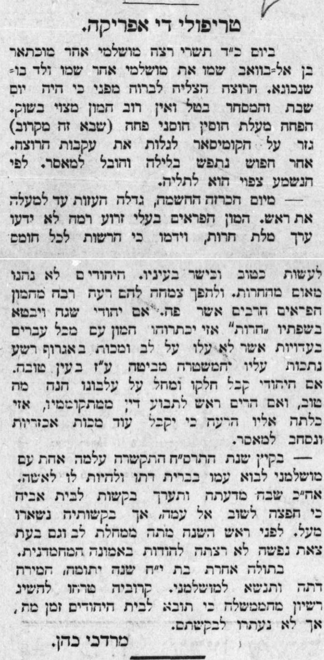 Photo: Rimoldi-Benghazi, from the Italian translation of "Higgid Mordechai" (Rome 1930).